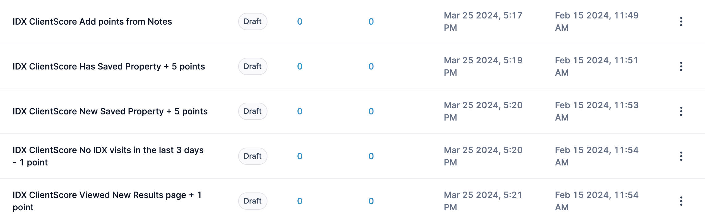 - IDX ClientScore Viewed New Results page + 1 point - add 1 point whenever a lead views a new results page
