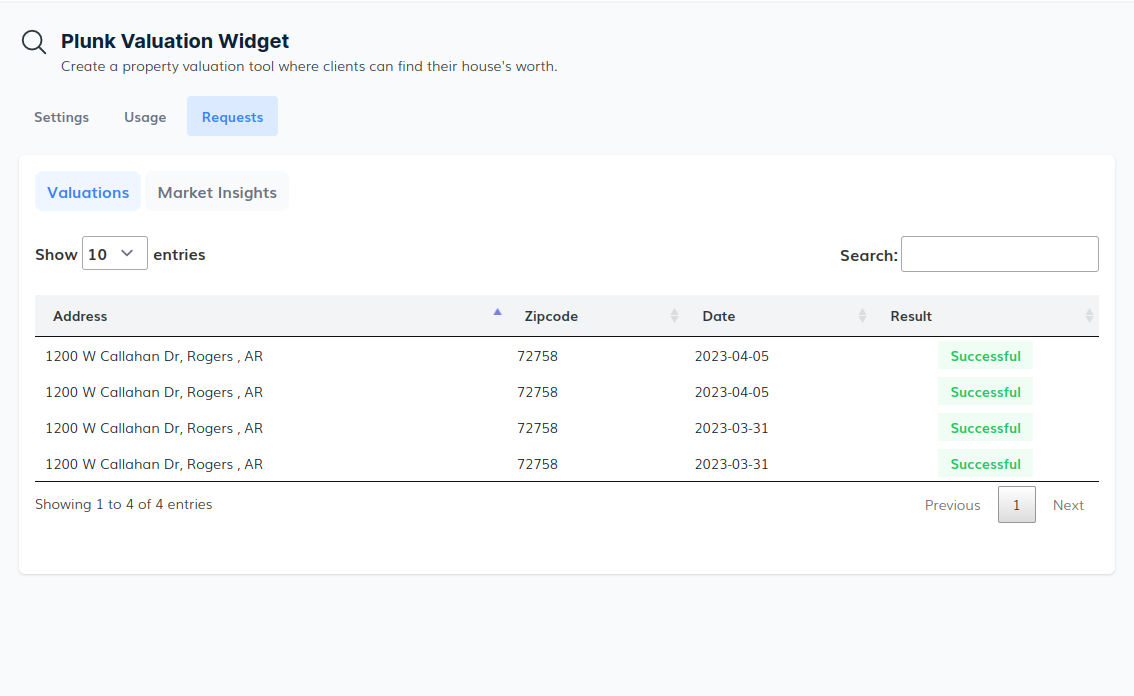 The Home Valuation Widget offers a user-friendly dashboard that allows agents and brokers to view a list of requests made by potential leads. The dashboard provides a summary of each request, including the property address and contact information.