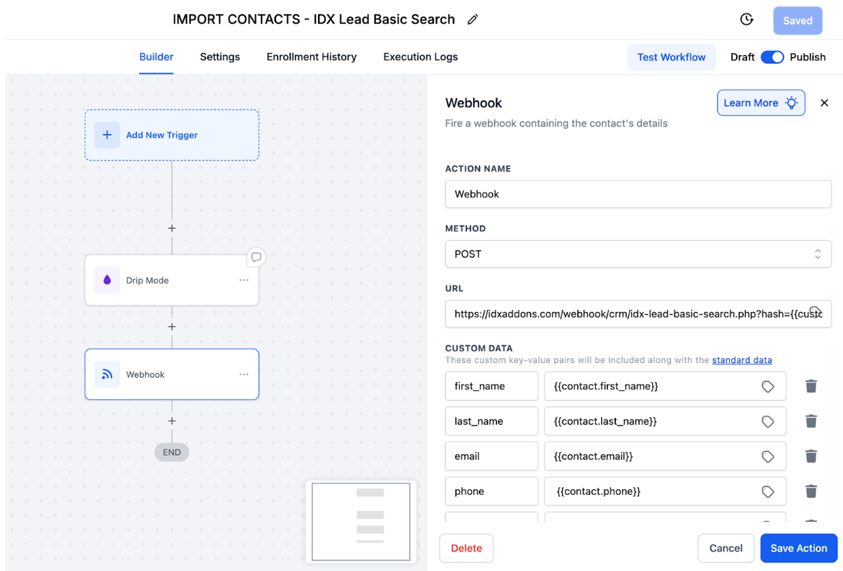 Import Leads to IDX Broker using a HighLevel workflow
