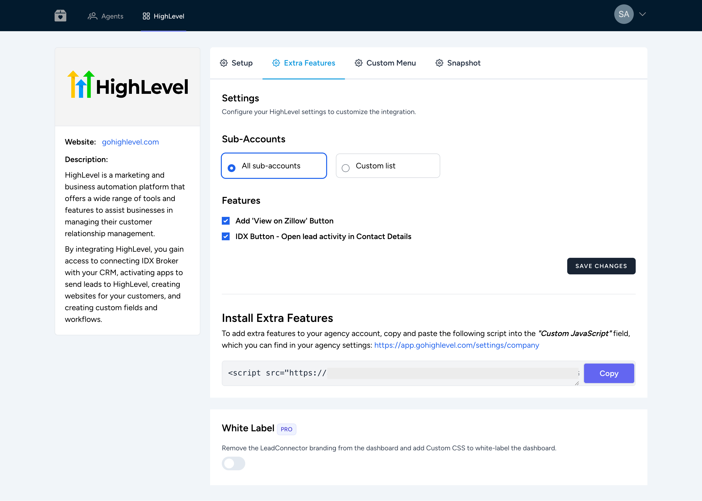 Go to your Agency Dashboard and click on the "Extra Features" menu item. This is how the page looks like: