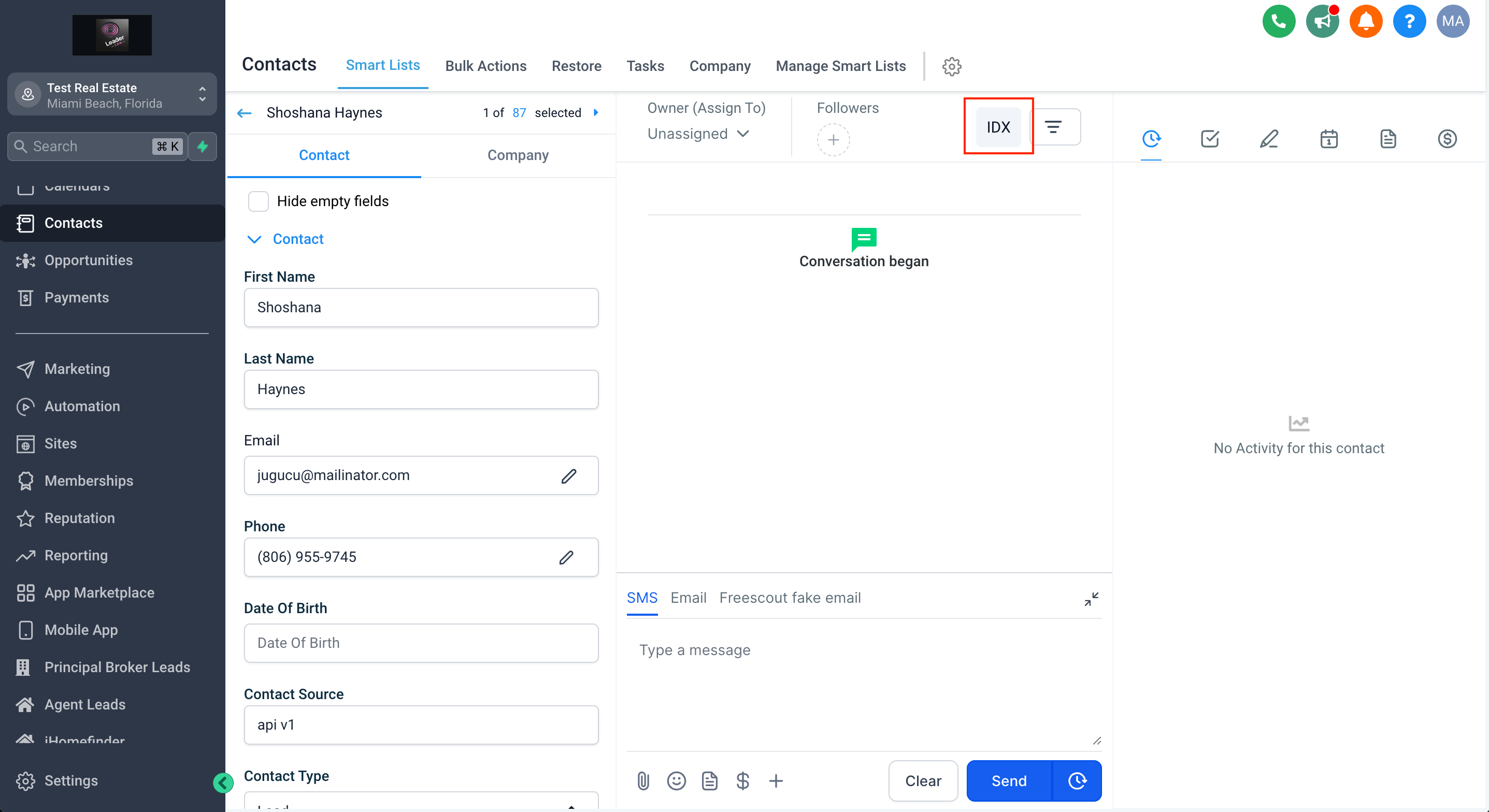 Now your HighLevel Contact Details page will show the Lead Manager (IDX button).