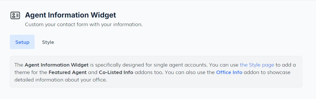 The Agent Information widget is designed exclusively for single-agent accounts. If you do not have this type of account, you will not be able to access the app and will receive a corresponding message.