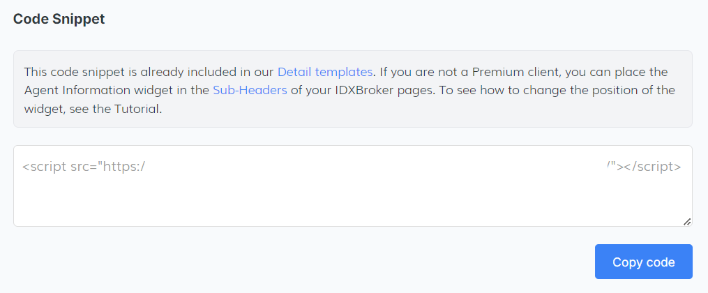 Once you are satisfied with the changes you have made, copy the code snippet provided to display the information on your website.