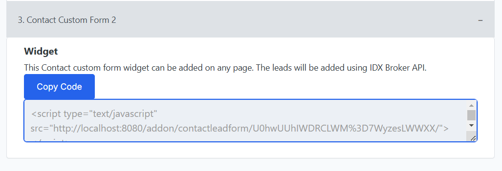 Allows you to add a custom contact form to any page on your website. Leads submitted through the form are automatically registered using the IDX Broker API, streamlining the management and tracking of contact data.