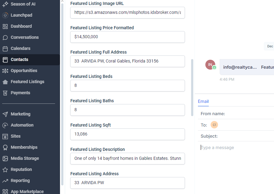 Go to the app HighLevel - Send Featured Listings to contacts