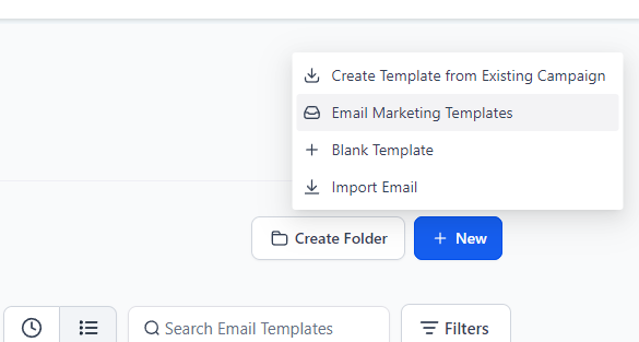 In HighLevel, go to Marketing > Templates and click on "Create Template." You can either create a blank template or use an existing one.