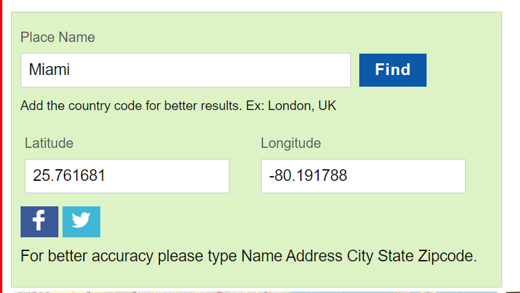Map Coordinates- In this section, you will specify the latitude and longitude to center your map.