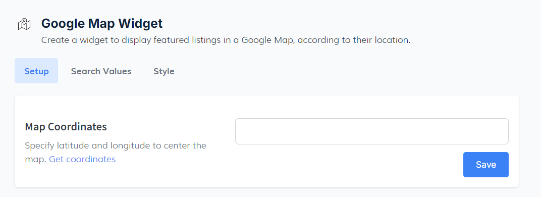 Upon entering the Google Map Widget app, you will see the Setup tab where you can configure various options to display your map. Follow the steps below: