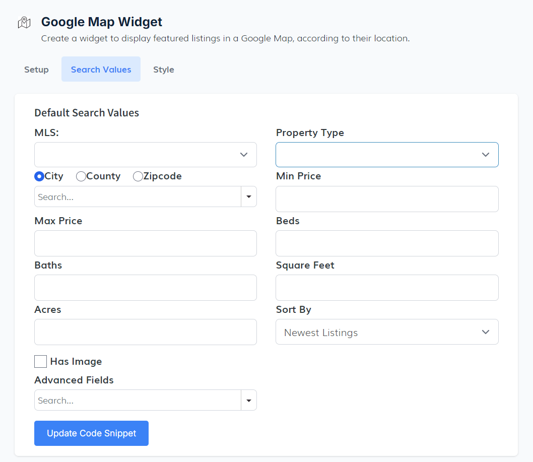 Default Search ValuesHere, you’ll find several options to refine your property search: