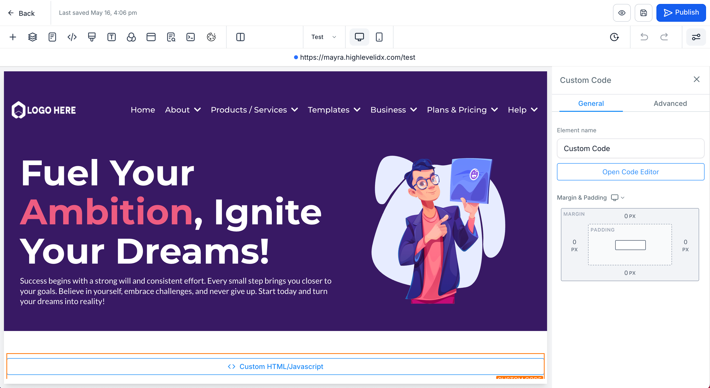 In this example, we will use the domain mayra.highlevelidx.com, so we will add the widget to the website that has this domain.