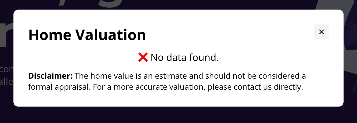 If no valuation is found, the user will still be created as a lead and you will receive an SMS alert with the details of the request.