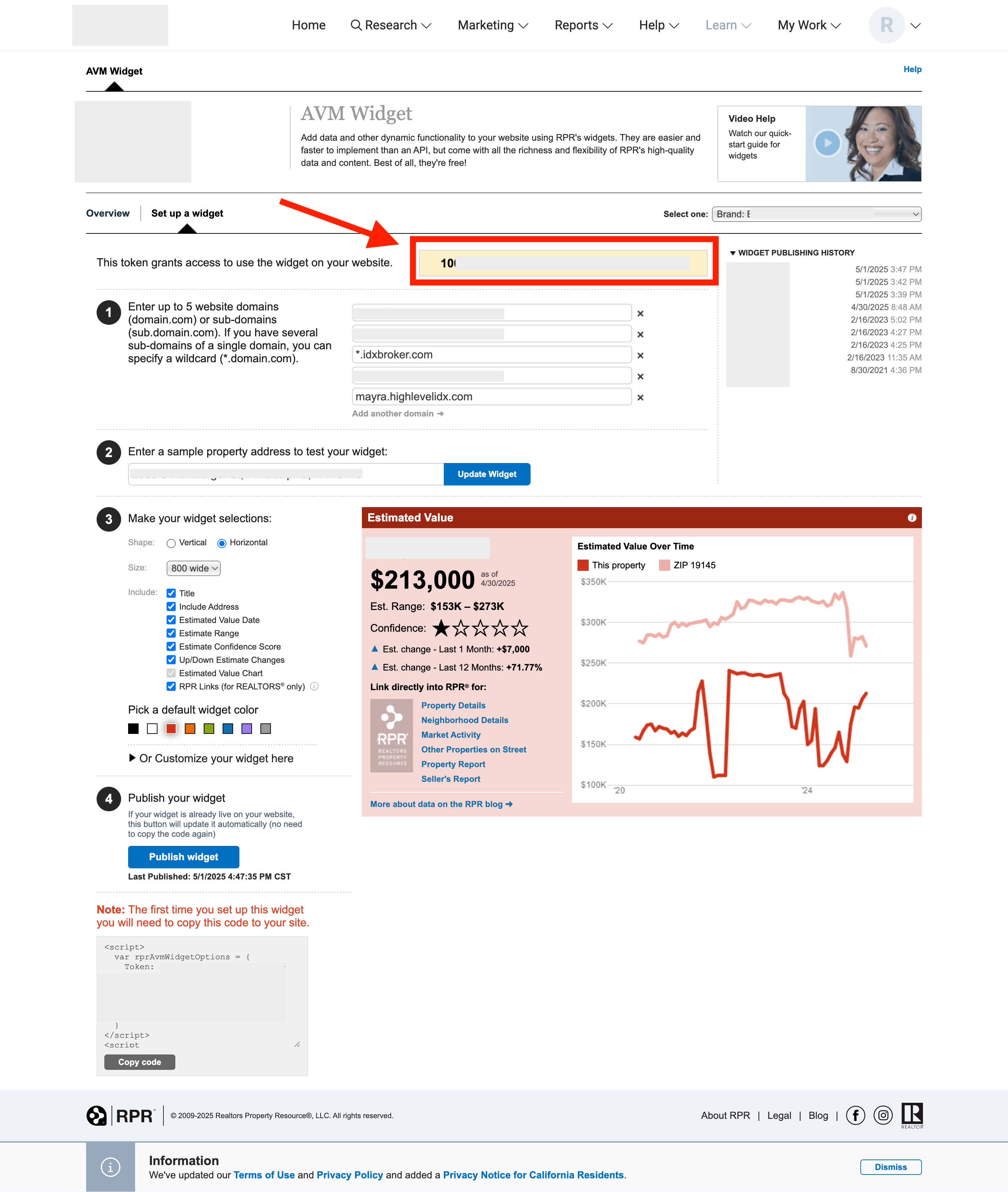 Log in to your IDXAddons account and select the RPR AVM Widget app.