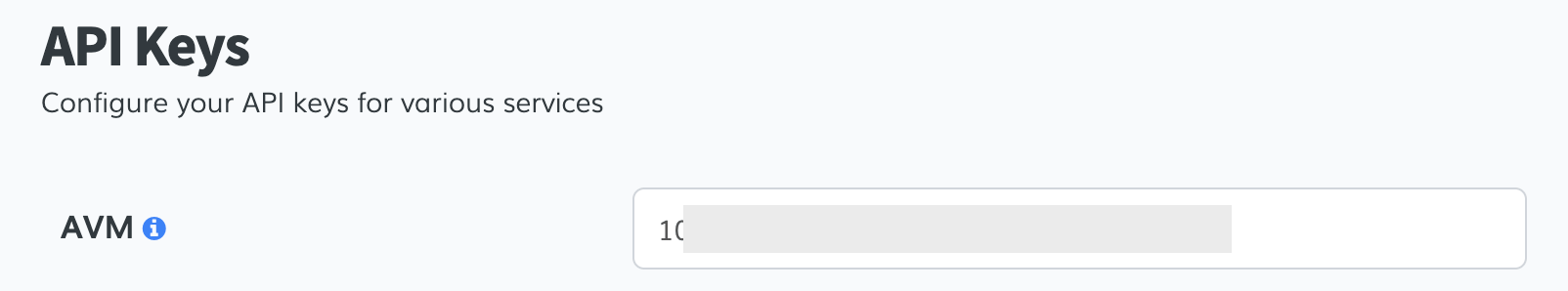 Go to the API Keys page, paste the token in the AVM field and click on the Save button.