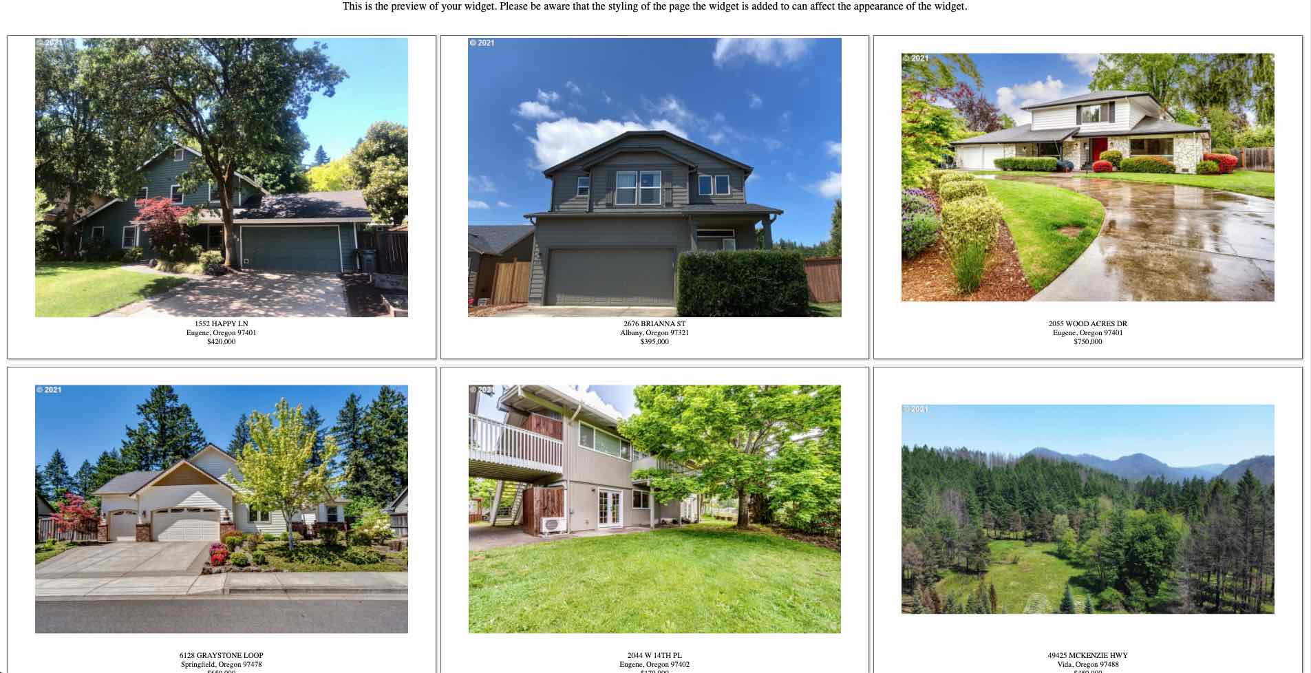 If you click on the view button on the widget in IDX Broker dashboard, you can get a preview of how the widget will look.